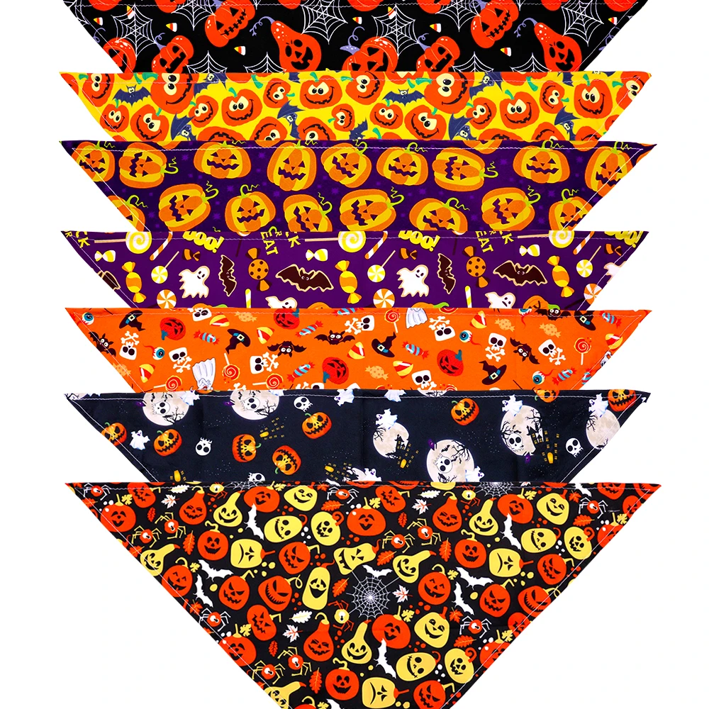- Paquet de Bandana pour chien, vente en gros, bon marché, Halloween, citrouille, crâne, personnalisé, Triangle imprimé, chien, offre spéciale, 100 pièces