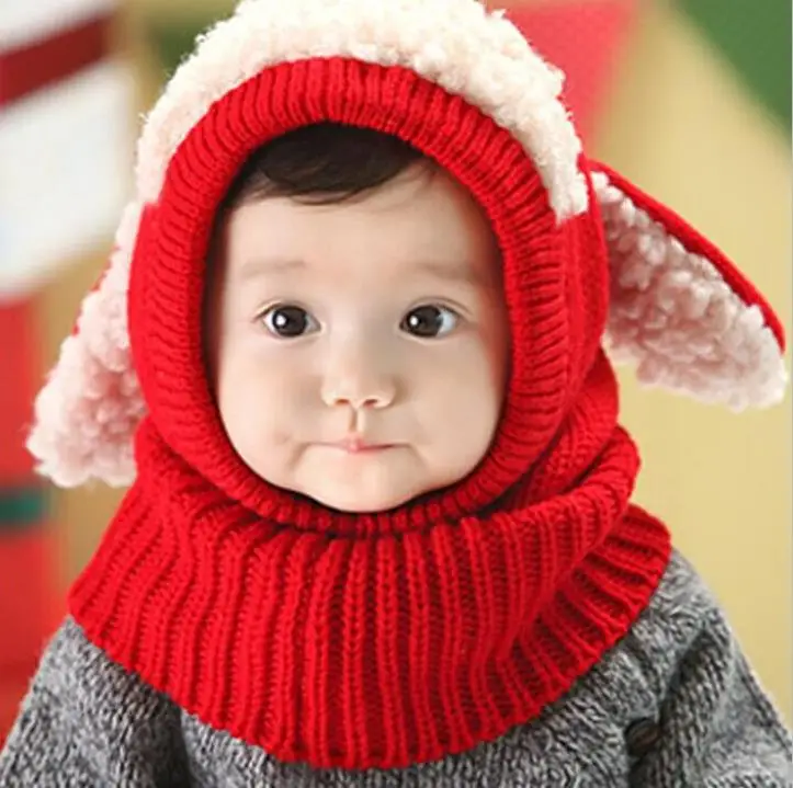 - Chapeaux chauds au Crochet pour bébé fille, bonnet en fil de laine tricoté à la main, mignon en forme de chien, écharpe pour bébé SN1479