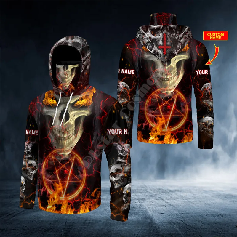 - Chien de garde Portes L'enfer Faucheuse Crâne Personnalisé Nom 3D Bandana Imprimé Sweat À Capuche Taille US Femmes Hommes Casual Pull À Capuche Masque Chaud